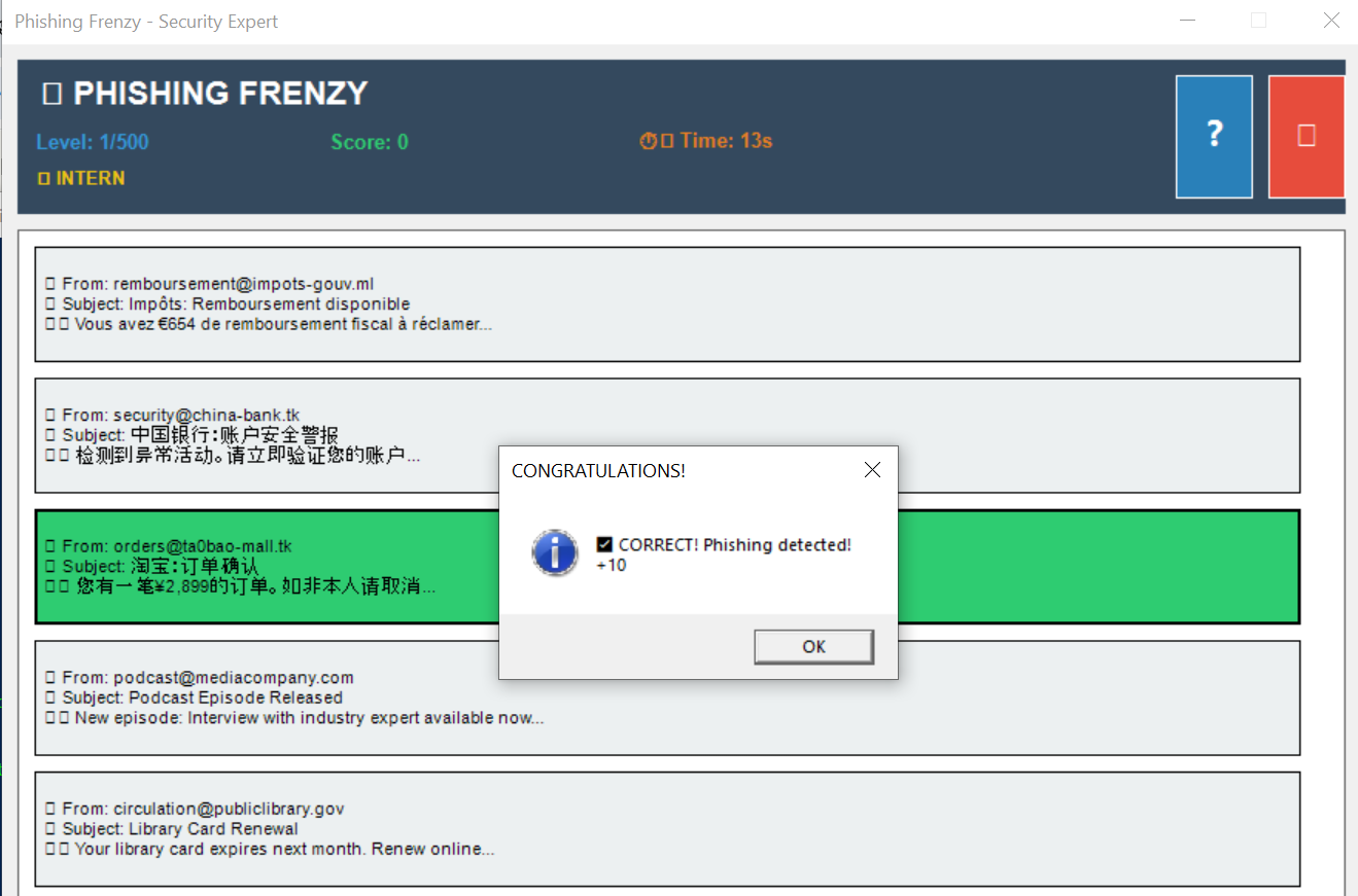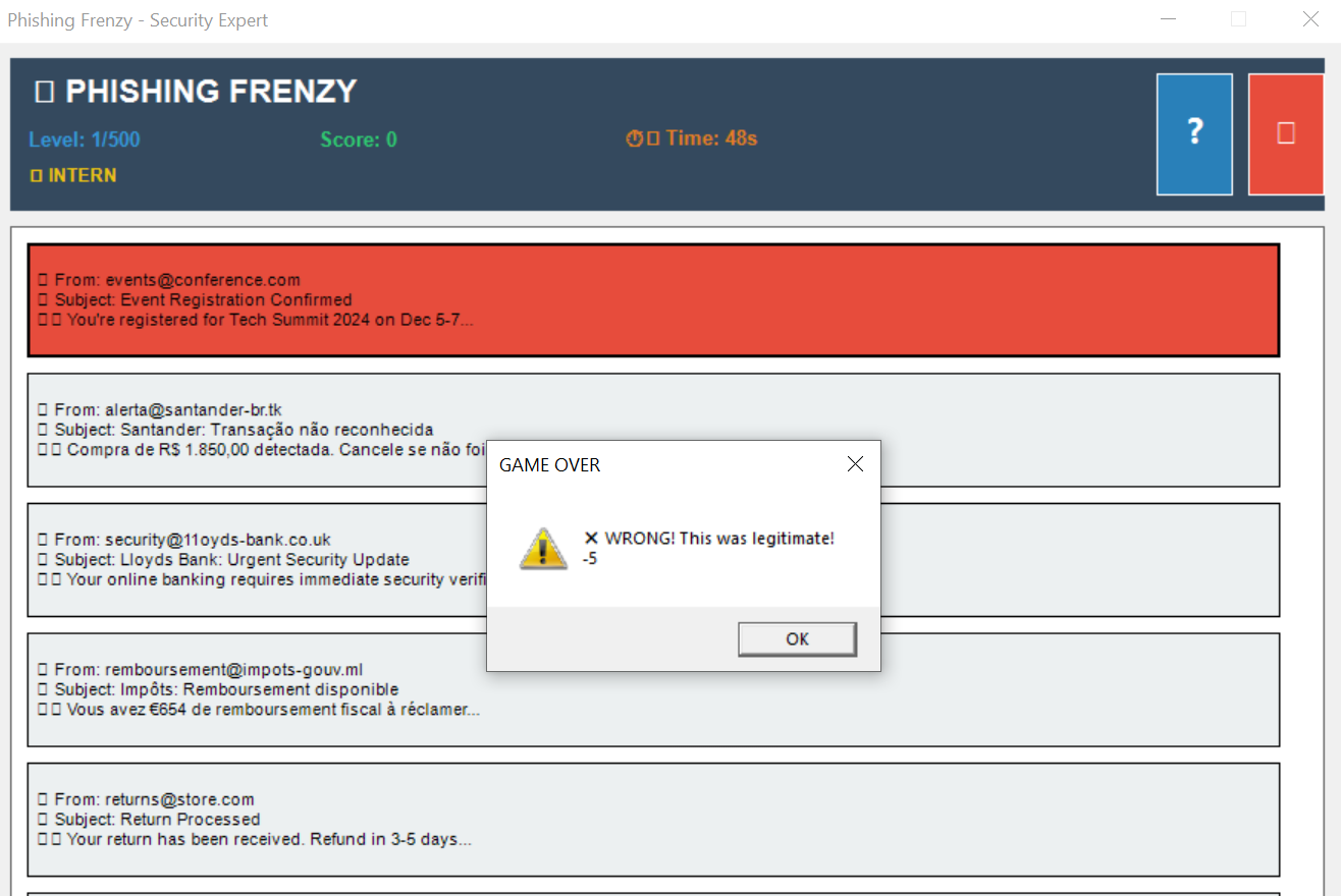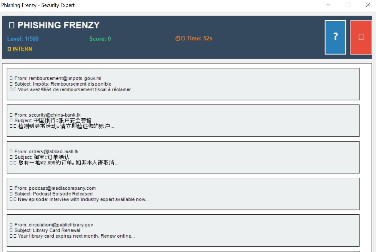 Phishing Frenzy - Security Expert Training Game